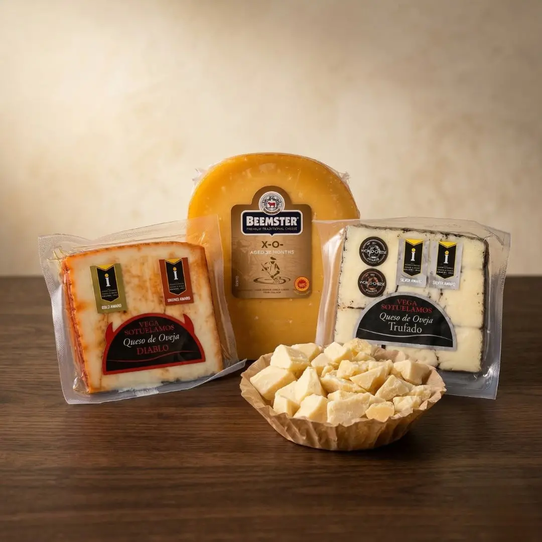 Seleccionados entre productores artesanos de toda España. Curados, semicurados, trufados, de leche cruda. Piezas que no encontrarás en el supermercado y que nuestro equipo elige por criterio, no por precio.