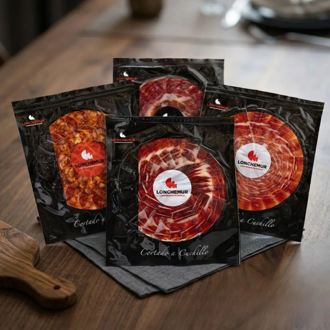 Jamón, lomo, paleta, salchichón, chorizo... Cortado a mano en nuestra sala blanca, la única certificada de la Región de Murcia para loncheo industrial a cuchillo.