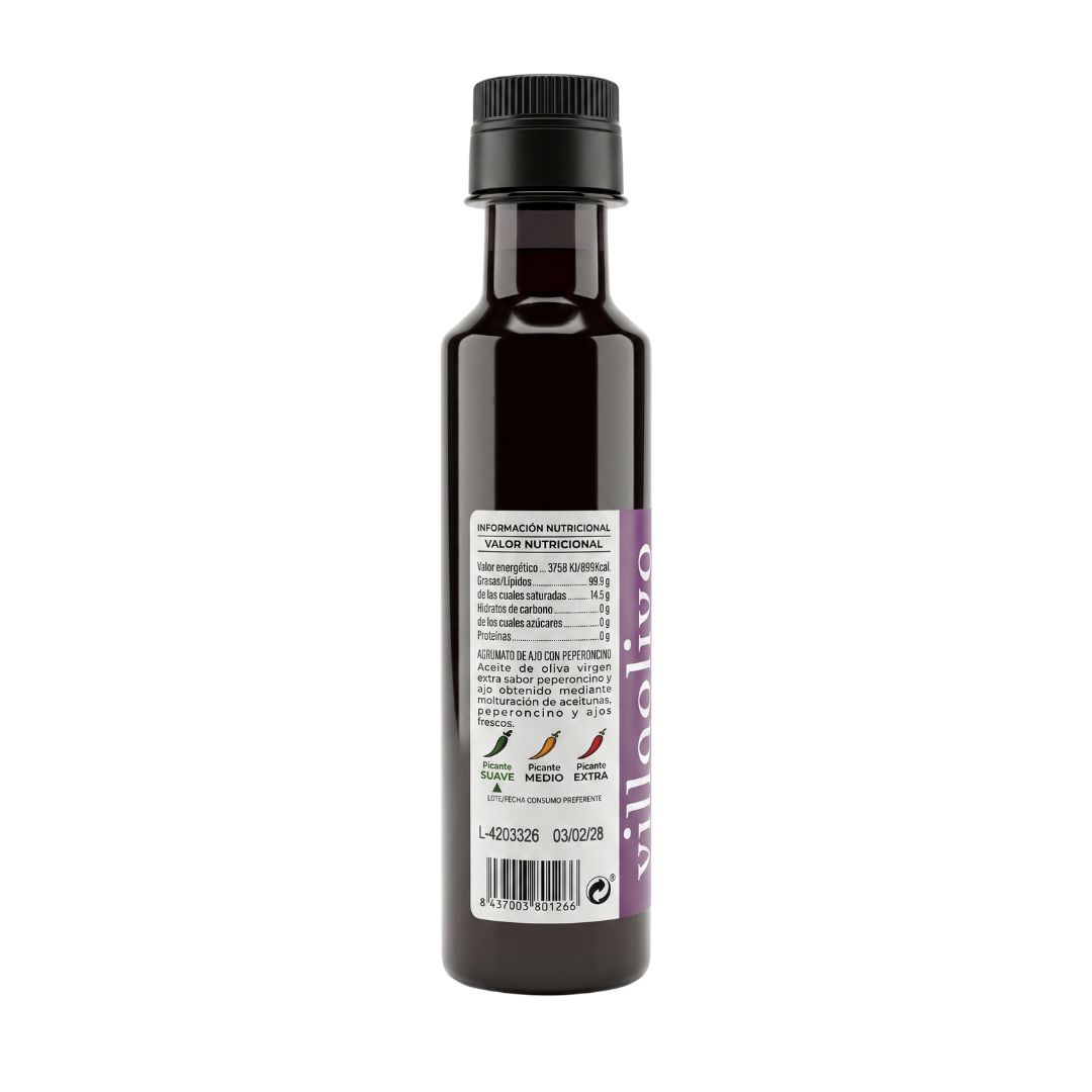 ACEITE DE OLIVA VIRGEN EXTRA CON AJO Y PEPERONCINO VILLAOLIVO · 250 ML