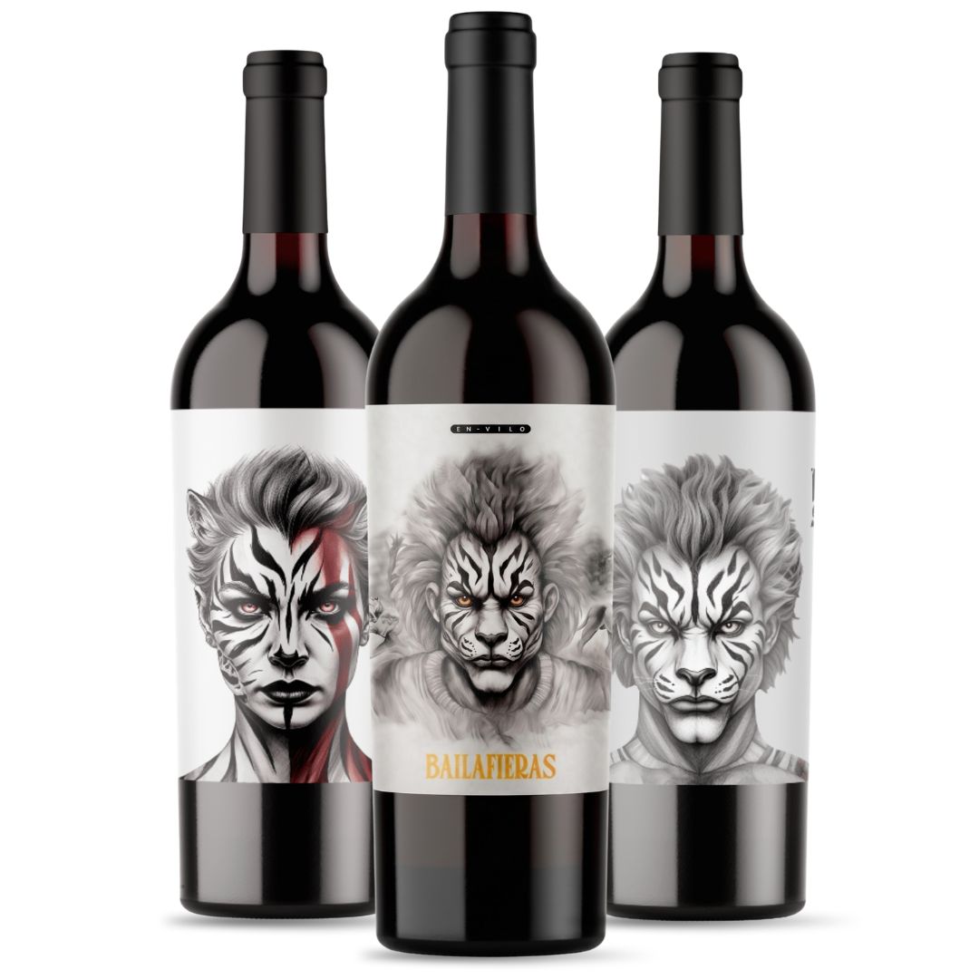 🍷 BAILAFIERAS 2022 Garnacha Tintorera ecológica de Denominación de Origen Almansa, elaborada con mínima intervención y envejecida en roble francés, lo que le otorga una estructura singular y aromas únicos. El vino que lo inició todo: auténtico, fresco y de carácter inconfundible. En copa muestra un color púrpura profundo con reflejos rubí, nariz de moras, arándanos y cacao sobre fondo balsámico, y un final ahumado que perdura.